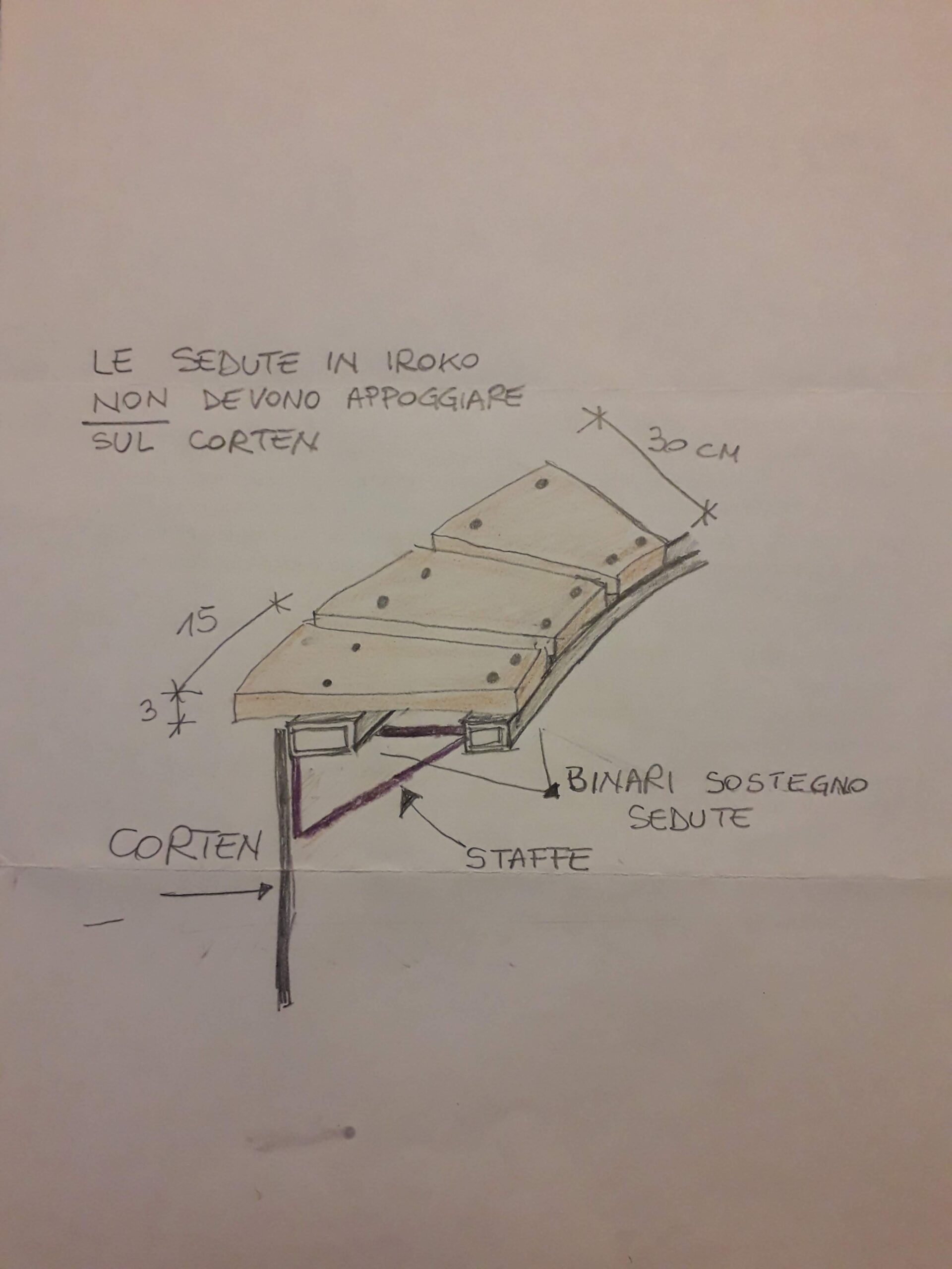Alla loro base sono state realizzate eleganti sedute semicircolari in legno di iroko, pensate al relax e alla contemplazione del paesaggio.