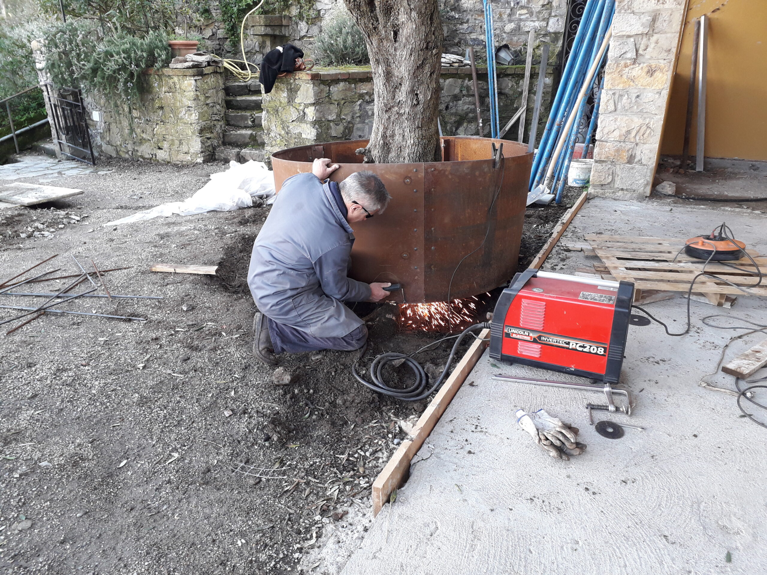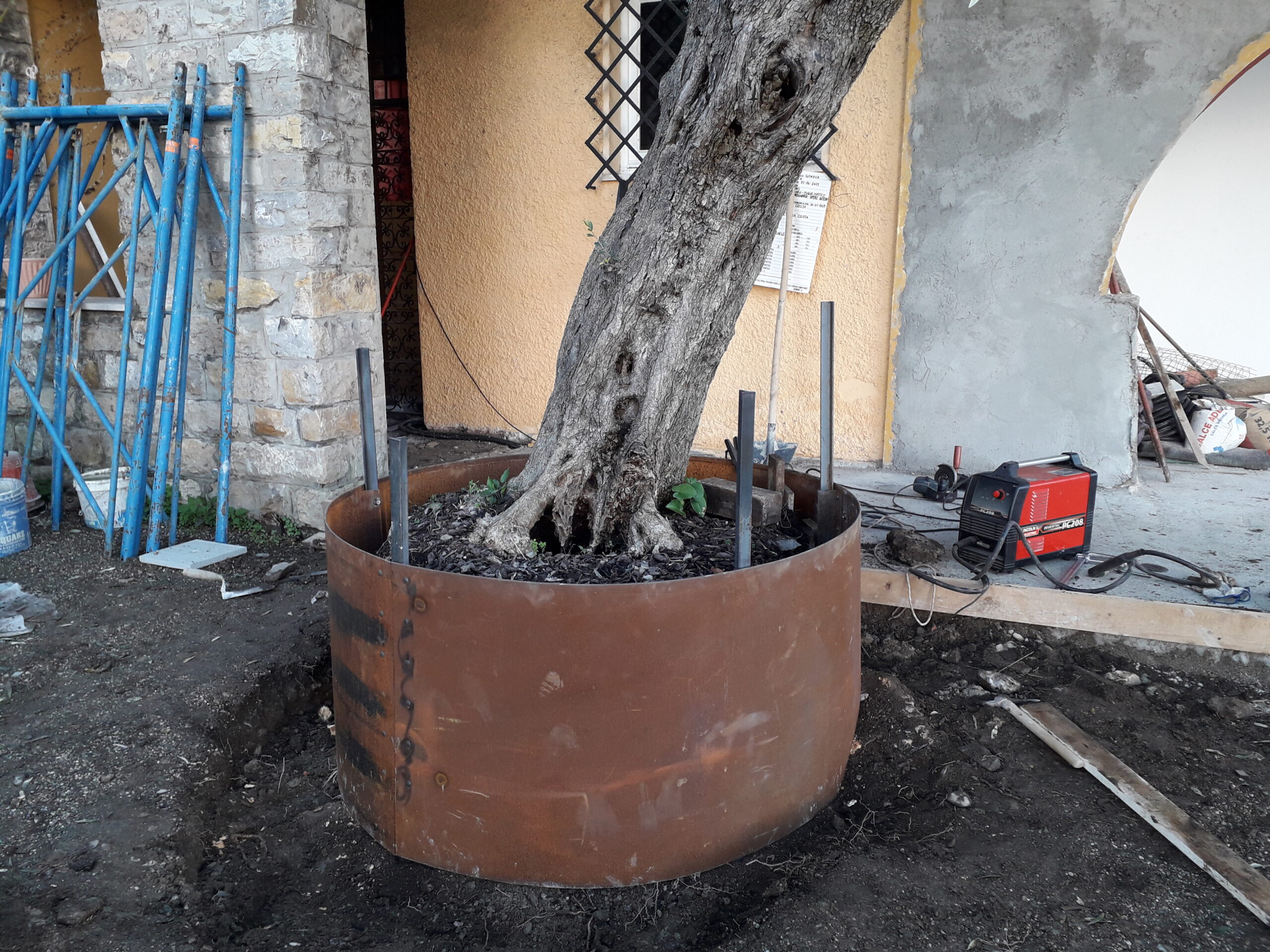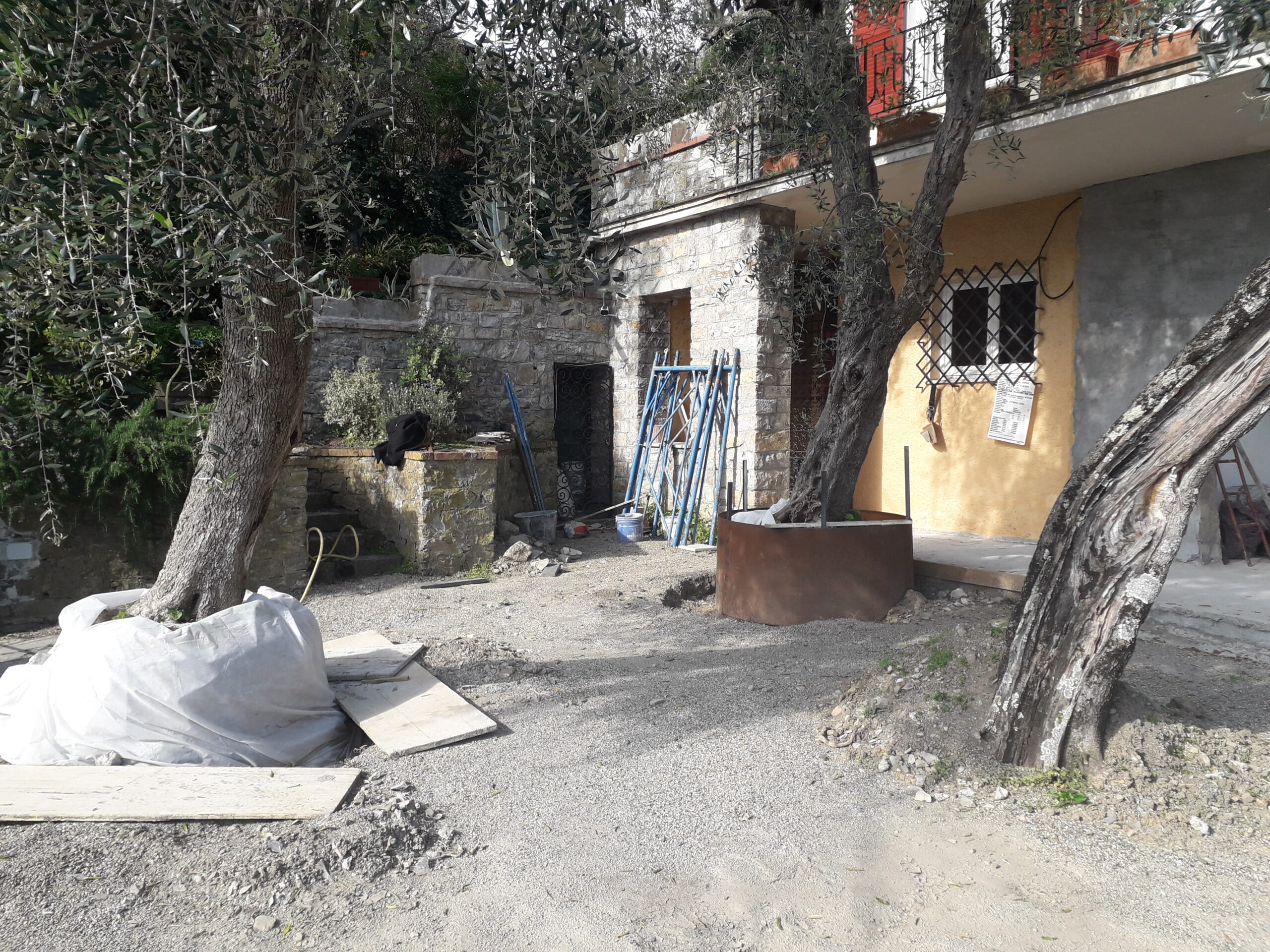 Questo giardino, realizzato alcuni anni fa sulle alture di Santa Margherita Ligure, nasce dalla trasformazione delle vecchie aiuole in pietra in nuove aiuole contemporanee in acciaio Corten, progettate attorno ai due ulivi principali, veri protagonisti.